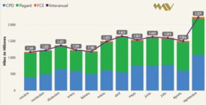 Haciendo un análisis de manera interanual, el incremento fue del 114%.