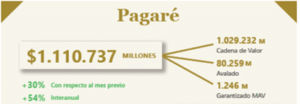 Finalmente, cuando se lo clasifica por segmento, el 93% fueron pagarés cadena de valor y un 7% restante fueron pagarés avalados.
